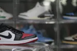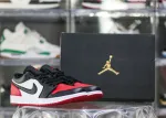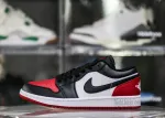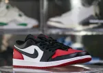 This Bred Toe 2.0 model maintains the same design elements and style as the high-top version but features a lower cut, making it a more casual and versatile option. The Jordan 1 Lows are crafted from a variety of materials, including leather, suede, and synthetic materials. The use of different materials allows for a range of color and texture variations. This model has a color range that is composed of black, white, and red.: