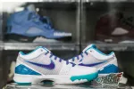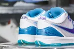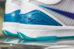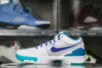 Look back at the 1996 NBA Draft and cop the Kobe 4 Protro Draft Day Hornets. This Kobe 4 comes with a white upper with blue and purple accents, purple Nike “Swoosh”, white midsole, and blue sole. These sneakers released in February 2019 and retailed for $175.: