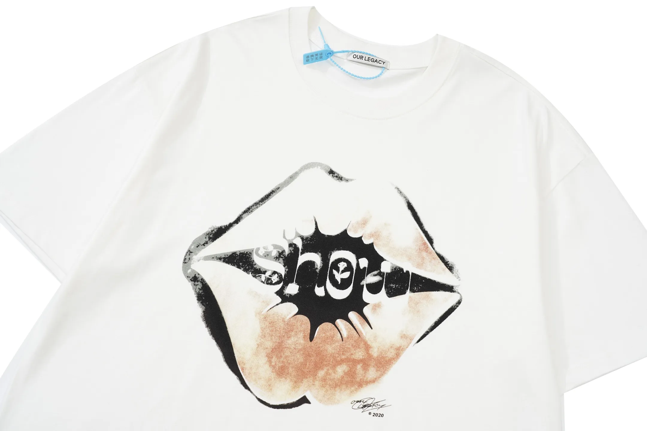 OUR LEGACY niche retro red lips logo print short-sleeved T-shirt white