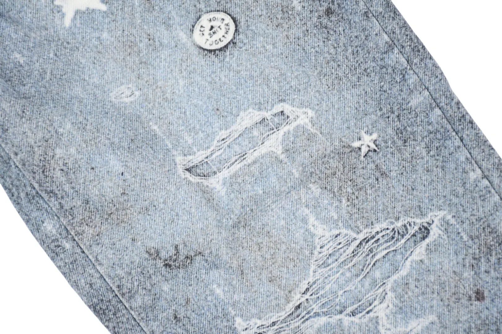 High-Density 12-Ounce Ring-Spun All-Cotton Denim Fabric: Made with imported high-thread-count, high-density pure cotton fabric, offering a soft, silky touch with a drapey texture. The fabric is lightweight, delicate, skin-friendly, and highly breathable. Its unique design incorporates ink-wash gradient elements.