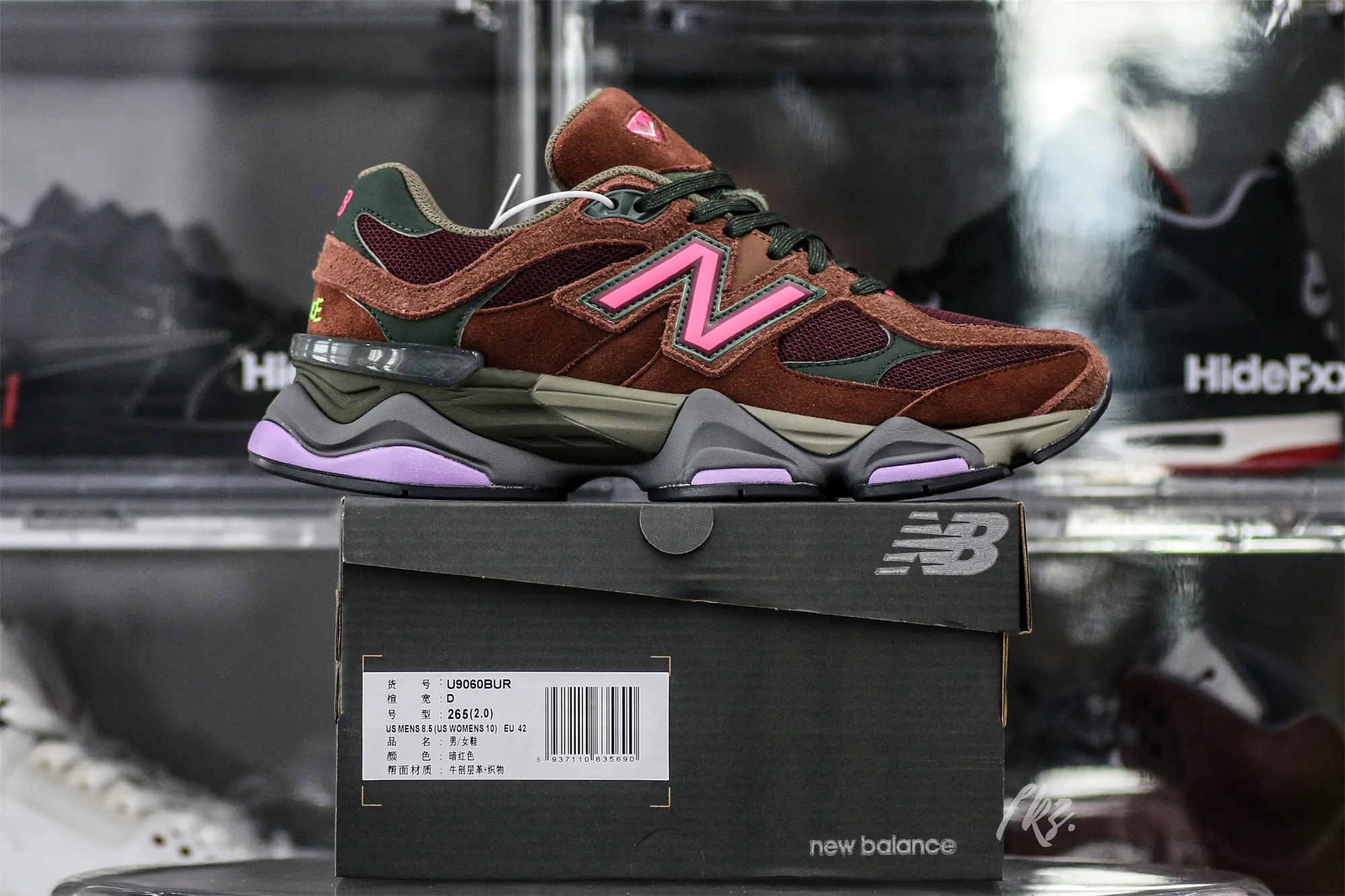 SKU: U9060BUR: Colorway: Rich Oak/NB Burgundy/Hi-Pink