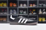 First appearing in 1950, the adidas Samba OG ‘Black Gum’ keeps the classic look, with a full-grain leather upper that has suede on the toe and heel. It has the familiar serrated Three-Stripes, a shiny logo, and a Bluebird label on the tongue for a vintage vibe. The rubber sole has a diverse tread pattern for good grip.: