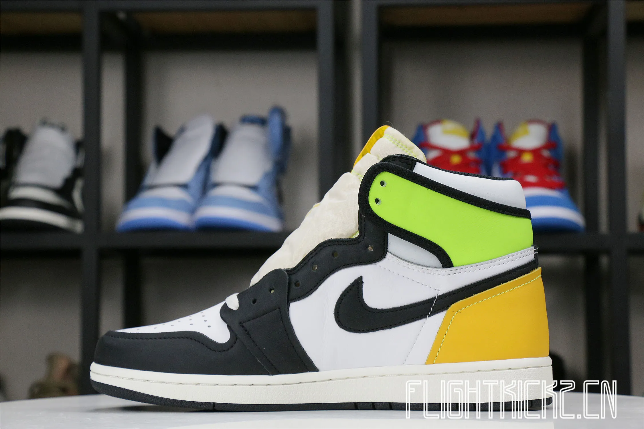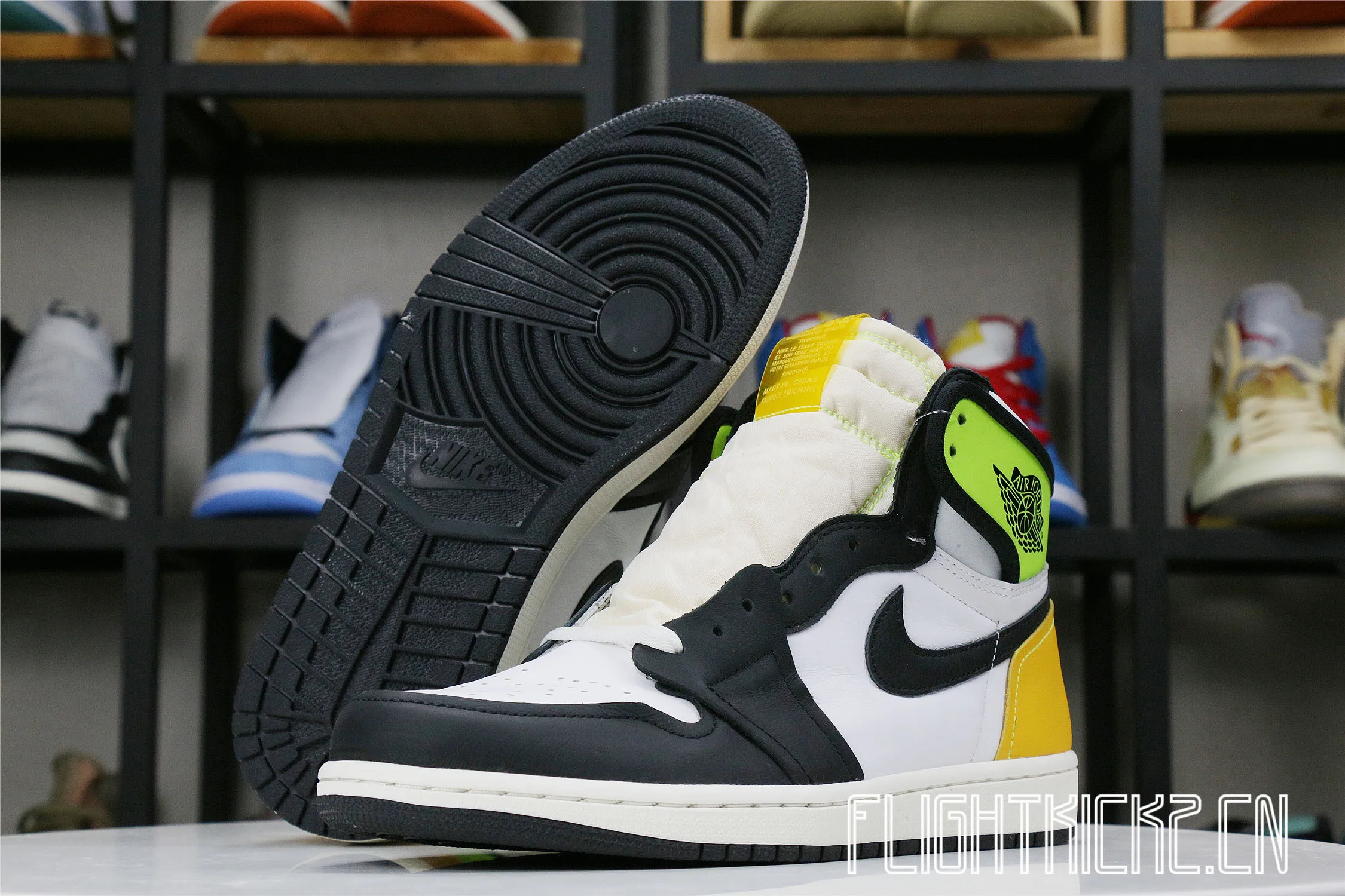 Jordan 1 Retro High White Black Volt University Gold