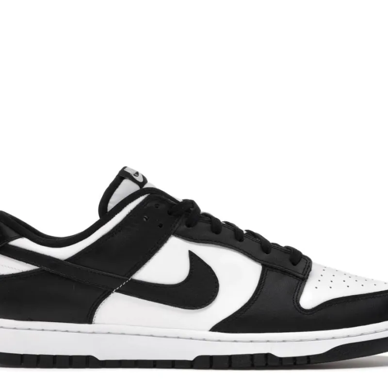 The Dunk Low ‘Black White’ also known as ‘Panda’ brings a classic two-tone look to its classic basketball construction. The shoe’s low-top build emerges in leather, with a white base contrasted by black overlays, with further black on the Swoosh branding. Perforations on the toe box provide breathability, while underfoot, the two-tone look is matched by the tooling, which incorporates a concentric rubber outsole for traction.: