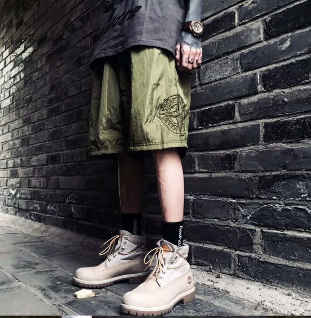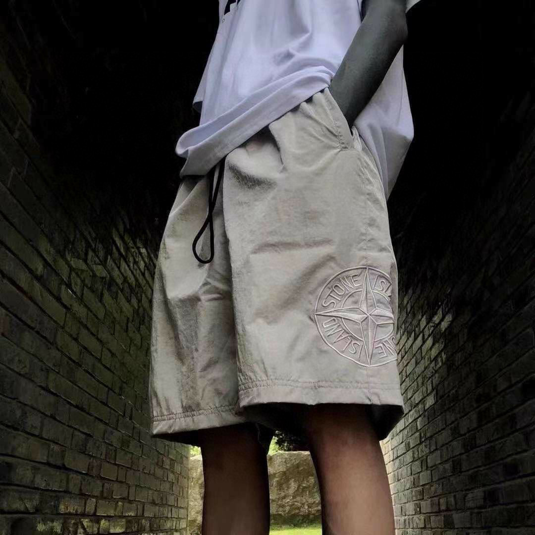 Stone Island Side compass large embroidered shorts gray