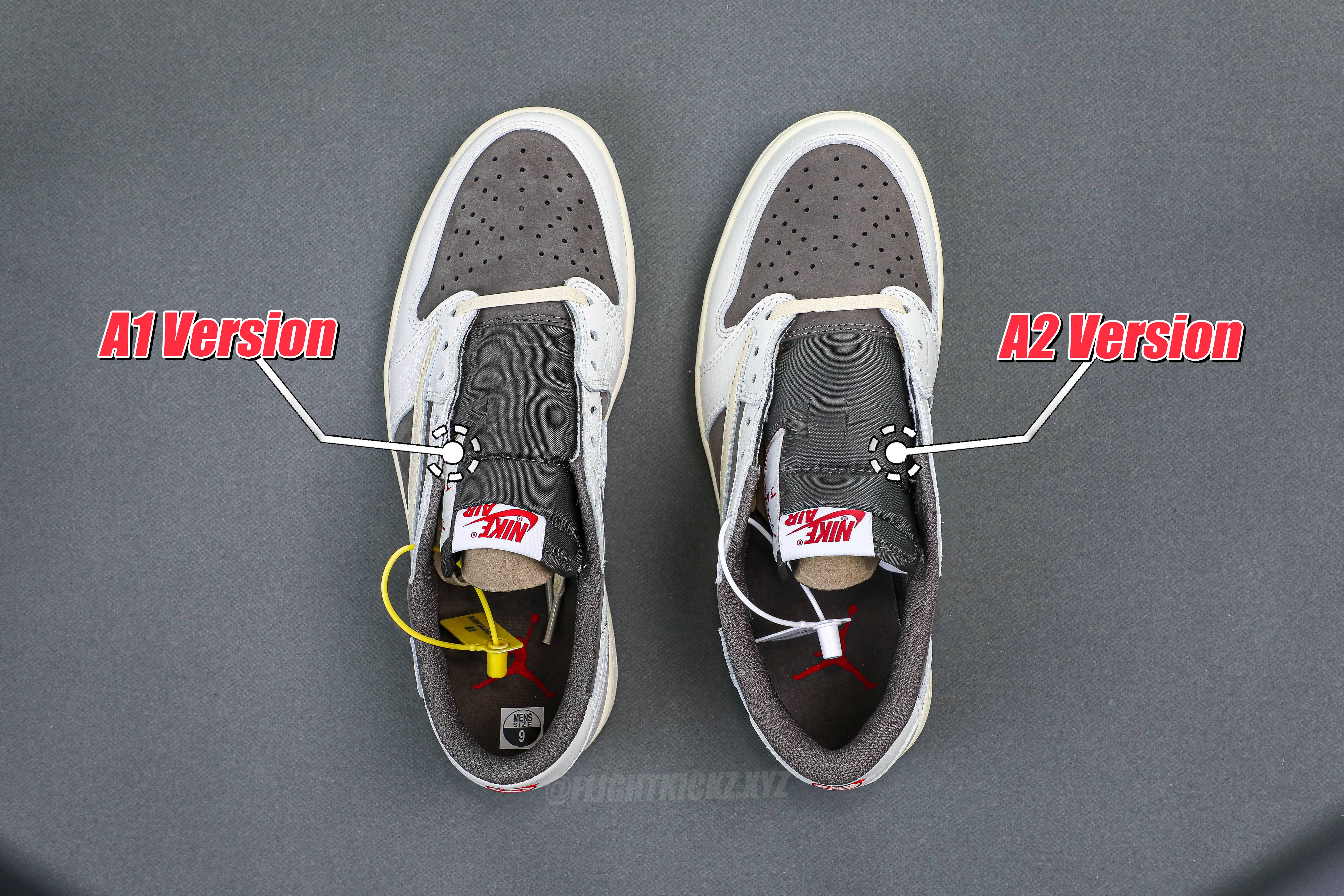The Flightkickz A2 version is a product meticulously designed for consumers seeking high cost-effectiveness. Although the A2 version does not use the original materials, its craftsmanship and attention to detail are consistent with the A1 version, showcasing the same level of exquisite production quality. We ensure that the A2 version continues to excel in both appearance and quality, allowing you to enjoy great value without compromising on detail and craftsmanship.: We have also provided a series of comparison images to give you a clear view of the quality differences between the Flightkickz A1 and A2 versions. Additionally, our A1 version comes with a yellow security tag, while the A2 version features a white security tag.