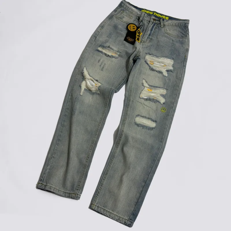 Drew House Smiley Face Digital Picture Sticker Stitching Jeans