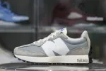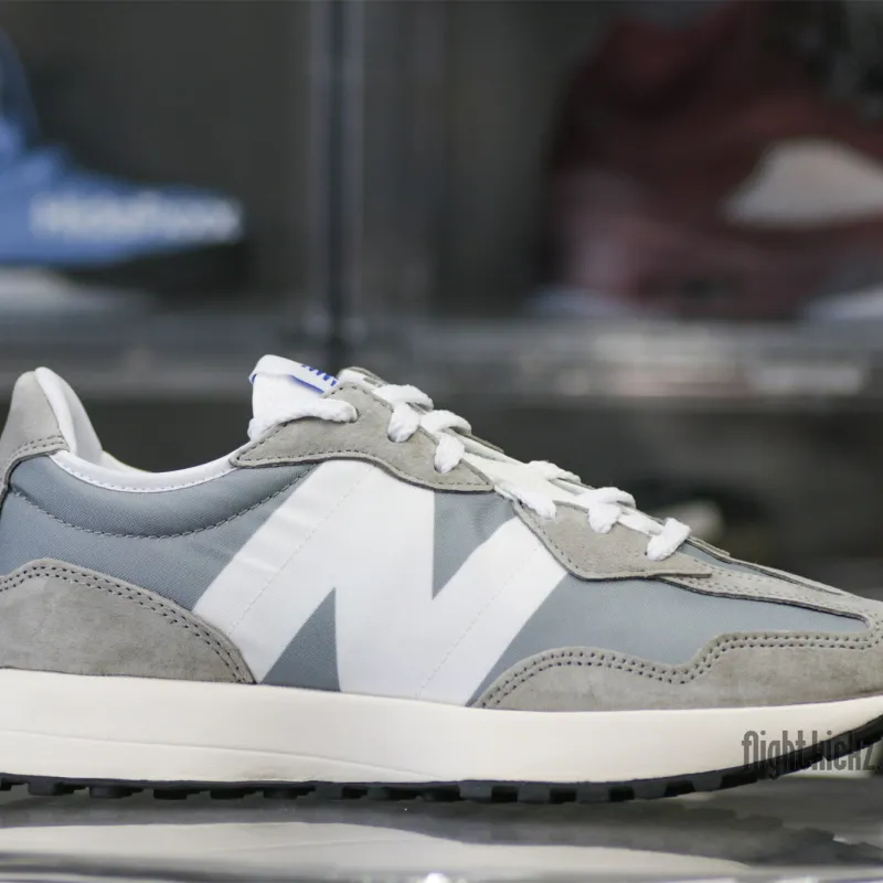 The New Balance 327 Grey features a grey and white suede and nylon upper with plain white acting as a color base for the thick midsole, lining, and trim at the collar of the New Balance 327. From there, a deep, smooth grey covers the base, wrapped in suede overlays, and a bright white New Balance logo complete the design.: The New Balance 327 Grey released in May of 2020 and retailed for $100.