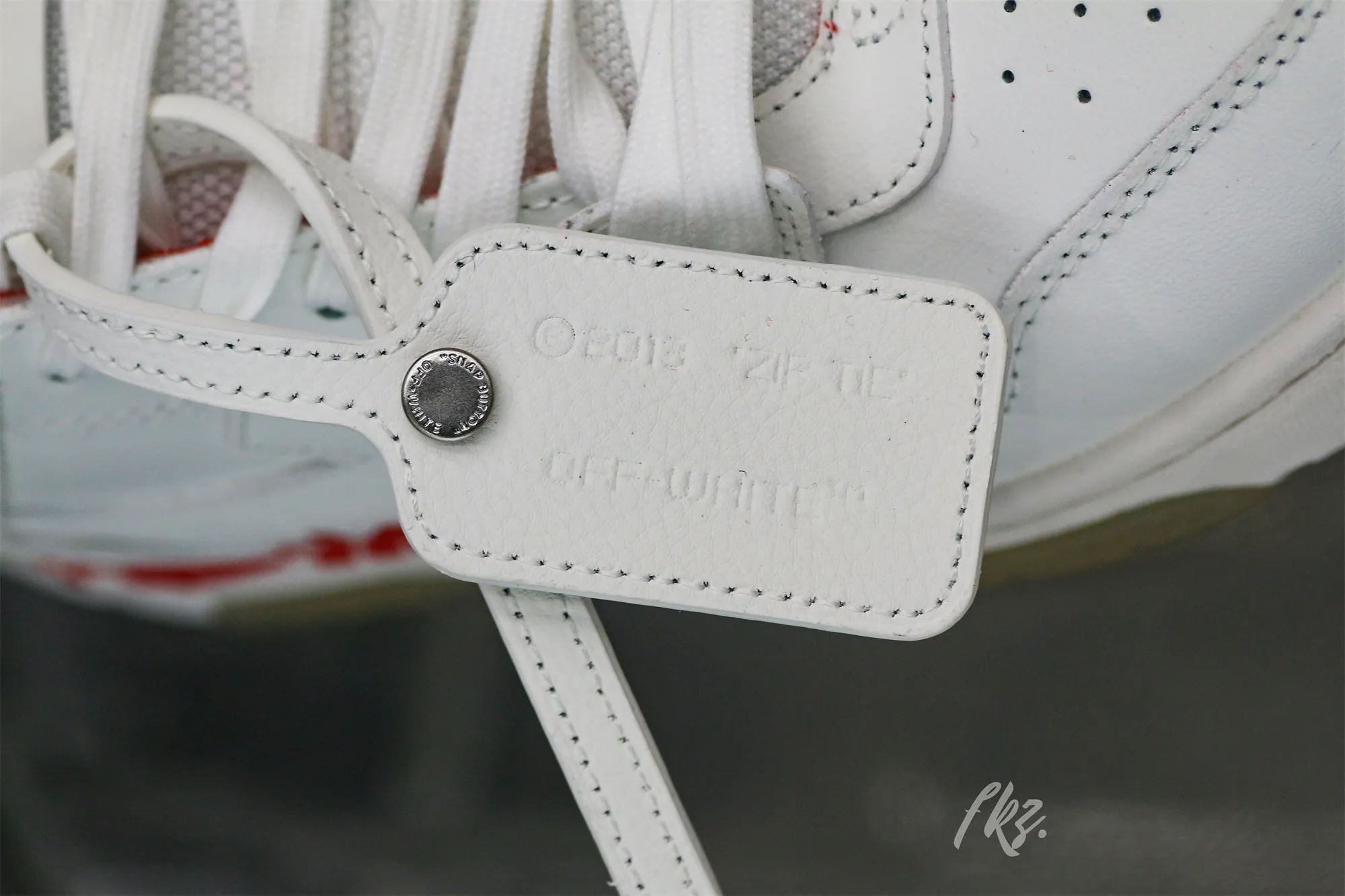 Off-White looks back on the ’80s and ’90s tennis shoes’ aesthetic and infuses the Out of Office ‘OOO’ sneakers with timeless accents that complement their innovative silhouette. Crafted from soft leather, they are marked with a ‘FOR WALKING’ quote motif at the sides and a signature safety tag at the upper.: