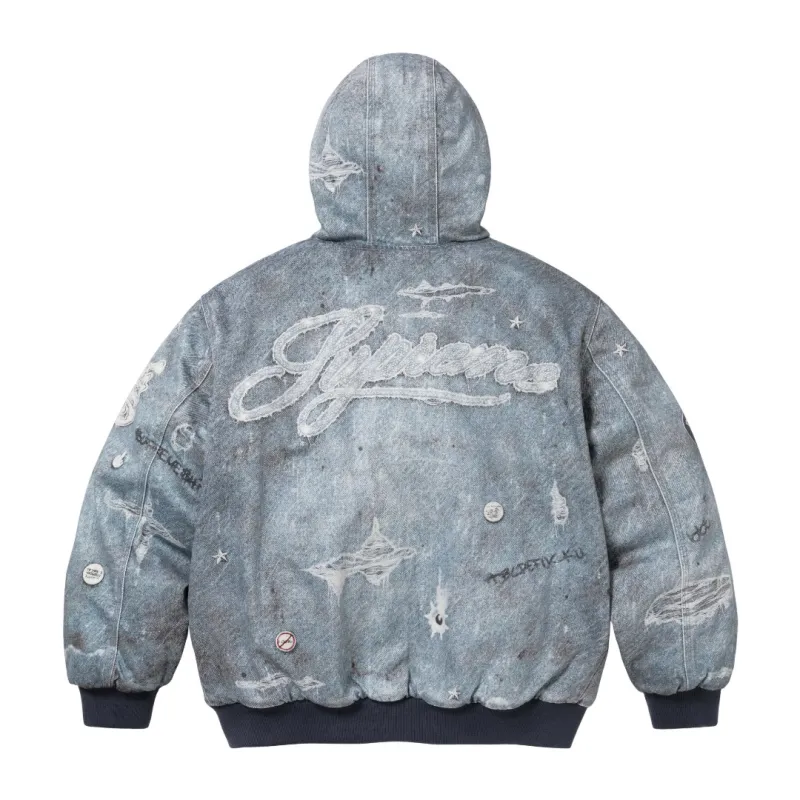 High-Density 12-Ounce Ring-Spun All-Cotton Denim Fabric: Made with imported high-thread-count, high-density pure cotton fabric, offering a soft, silky touch with a drapey texture. The fabric is lightweight, delicate, skin-friendly, and highly breathable. Its unique design incorporates ink-wash gradient elements.