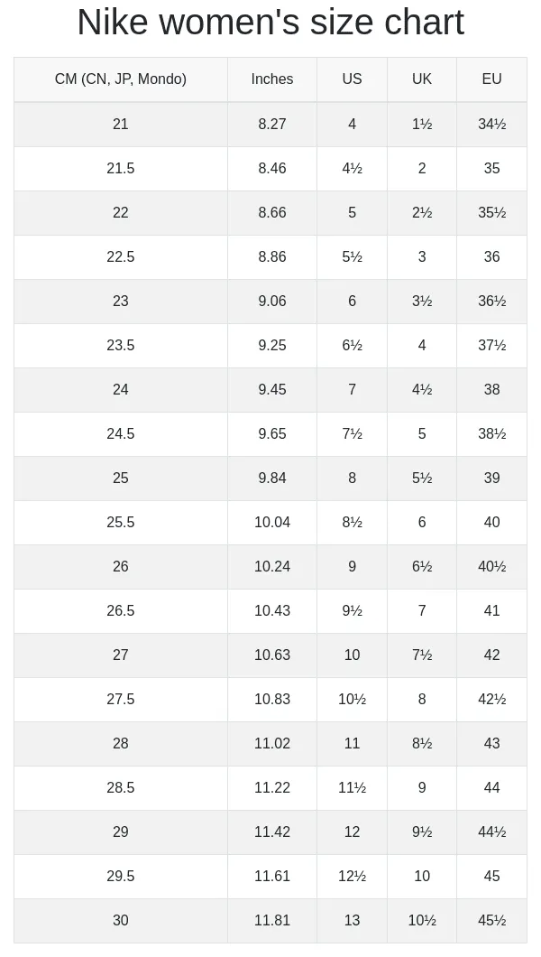 Nike Women size