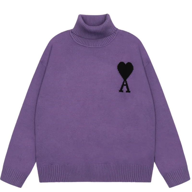 Am1 2024SS classic purple jacquard big heart turtleneck sweater