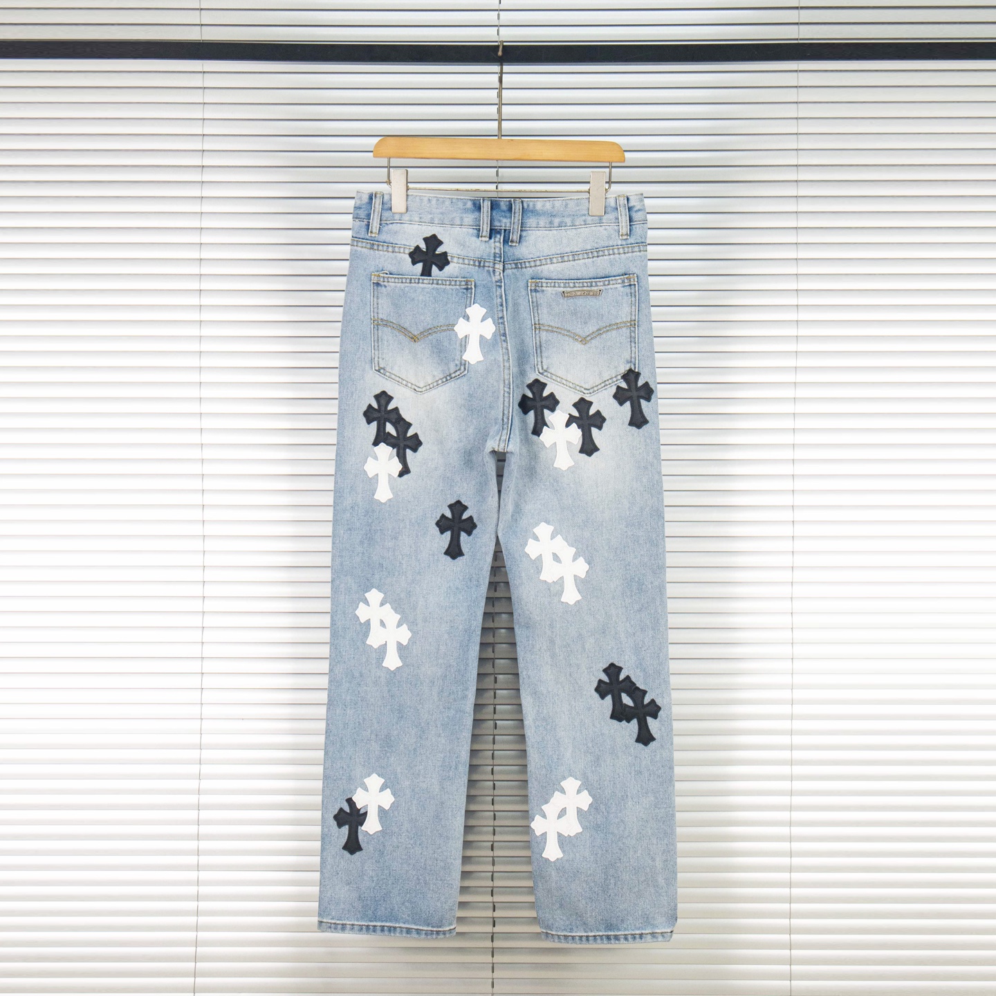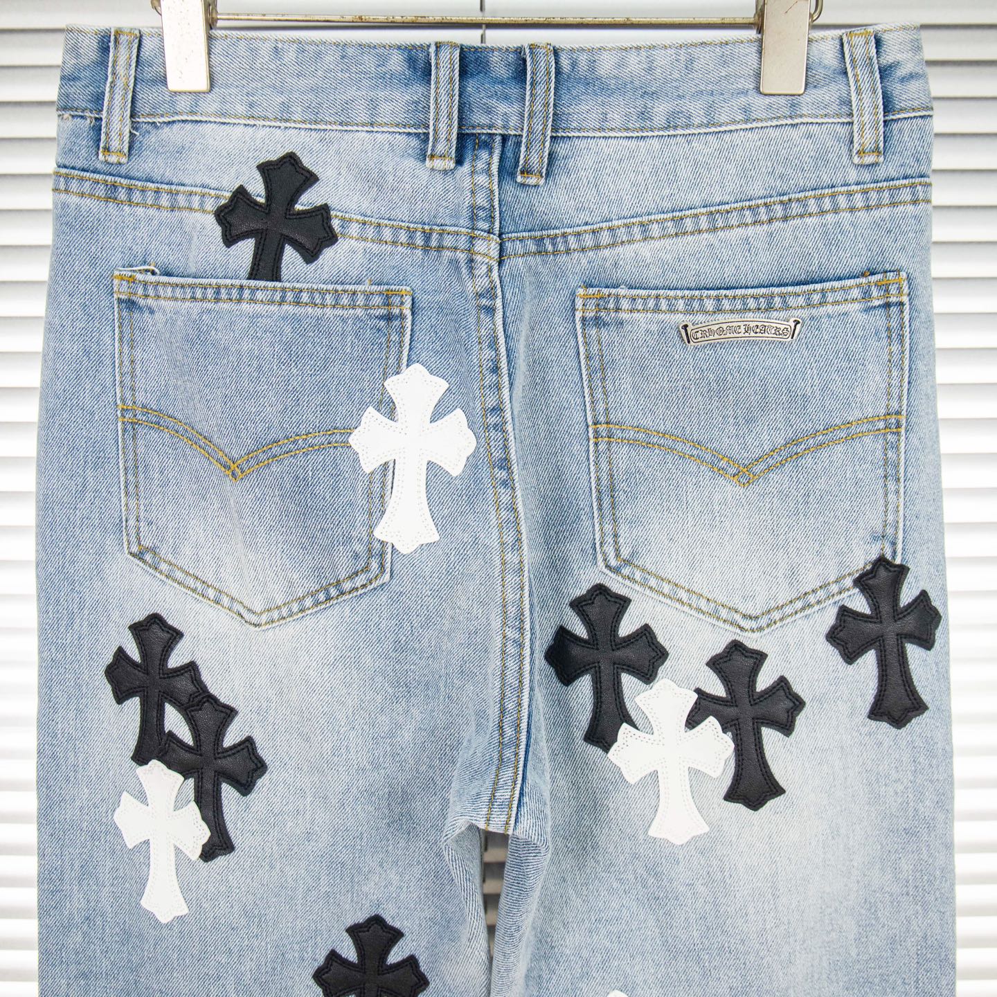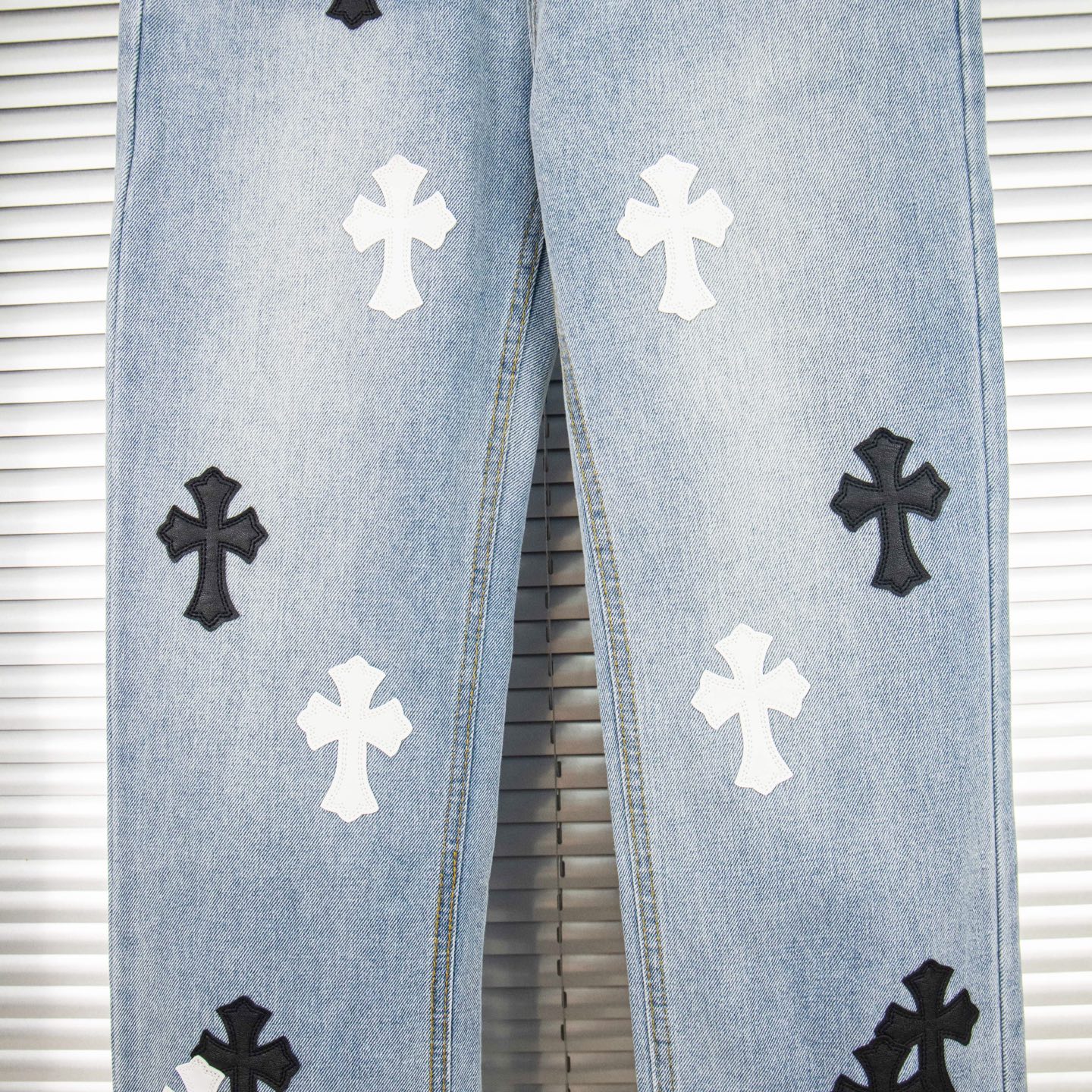 Chrome Hearts Black White Croesses Jeans