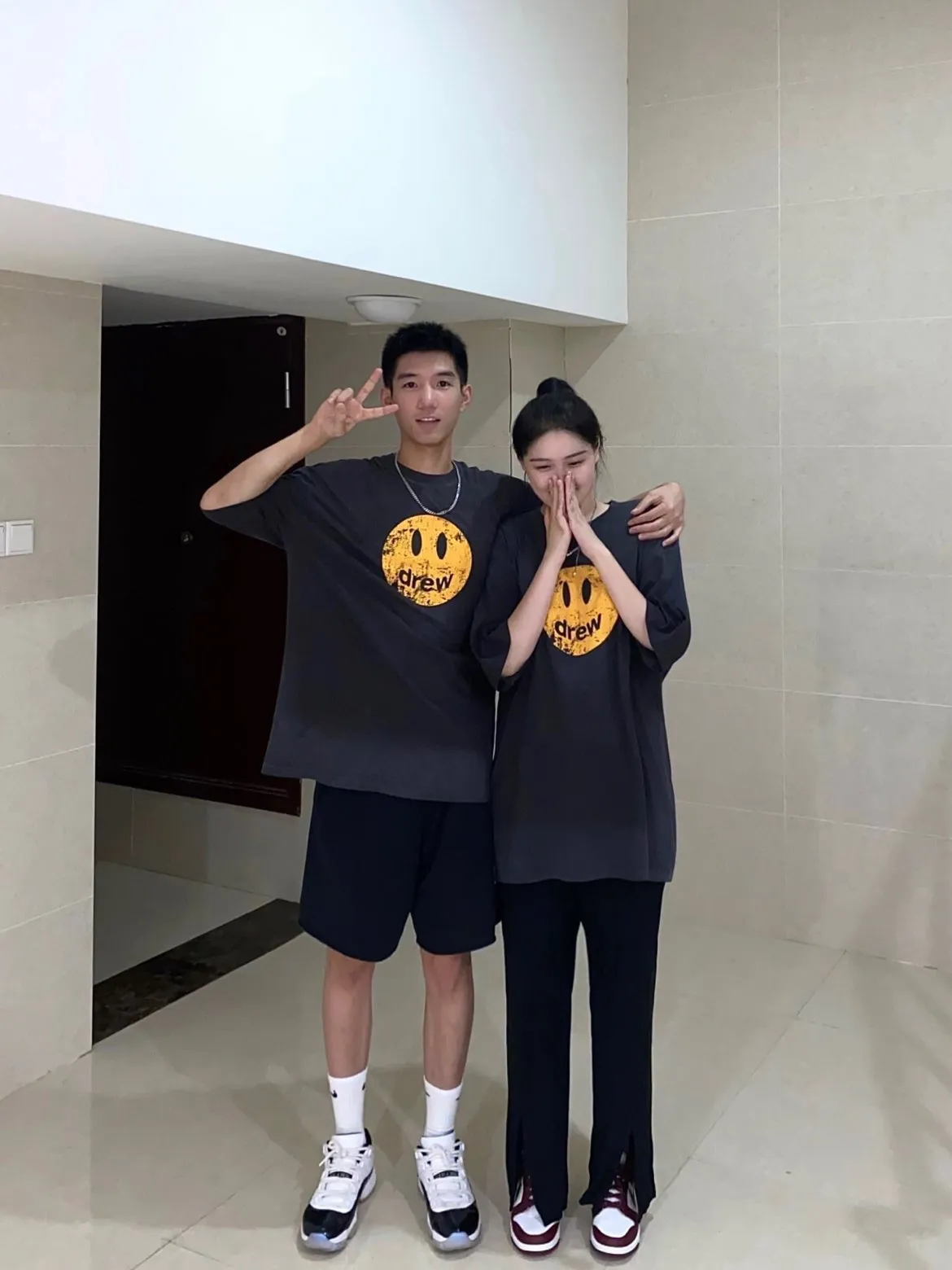 DREW washing to make old smiling faces and short sleeves