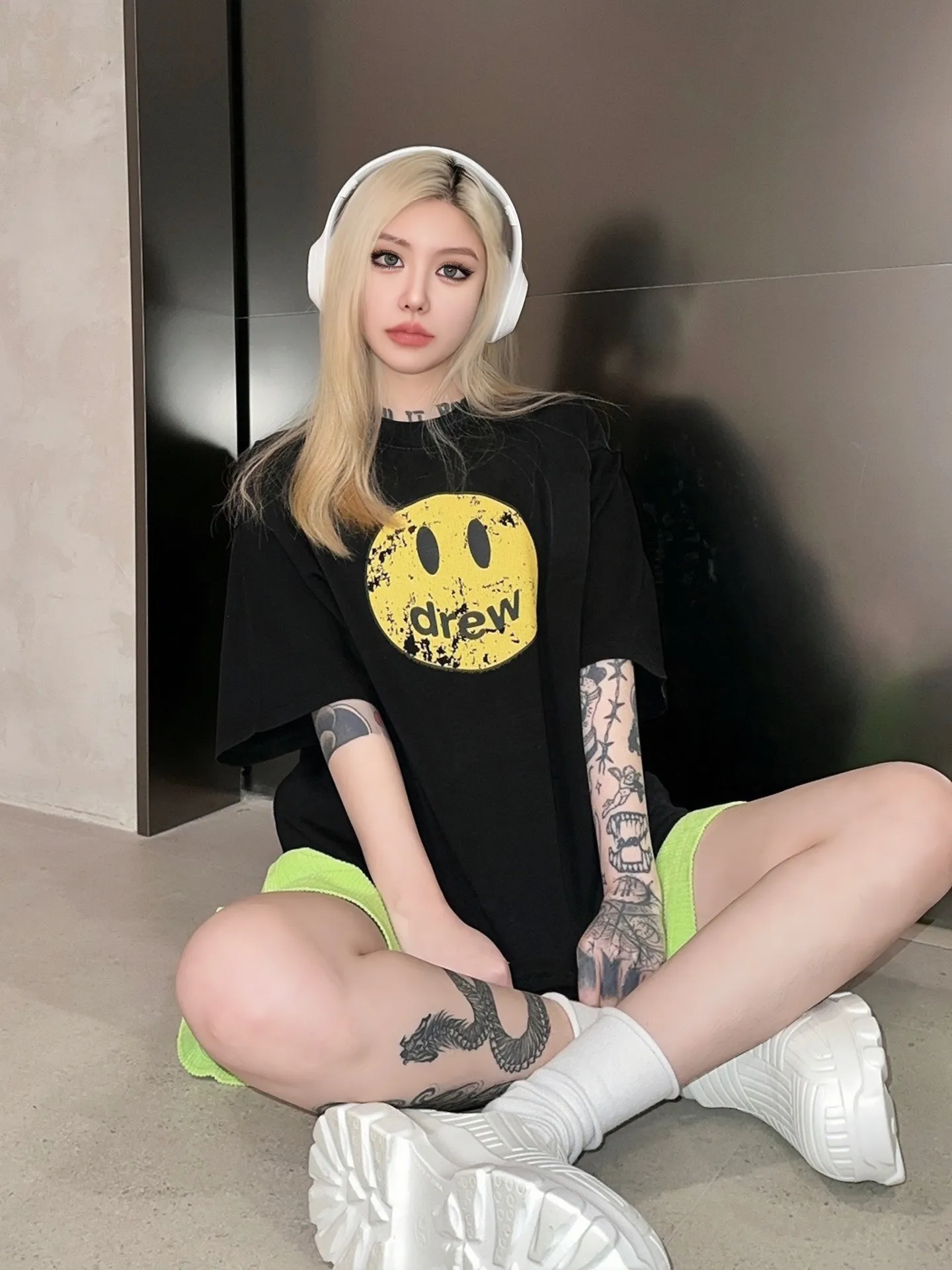 DREW washing to make old smiling faces and short sleeves