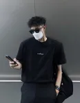 M-rg13la Black & White Upside Down Letter Embroidered Short Sleeves
