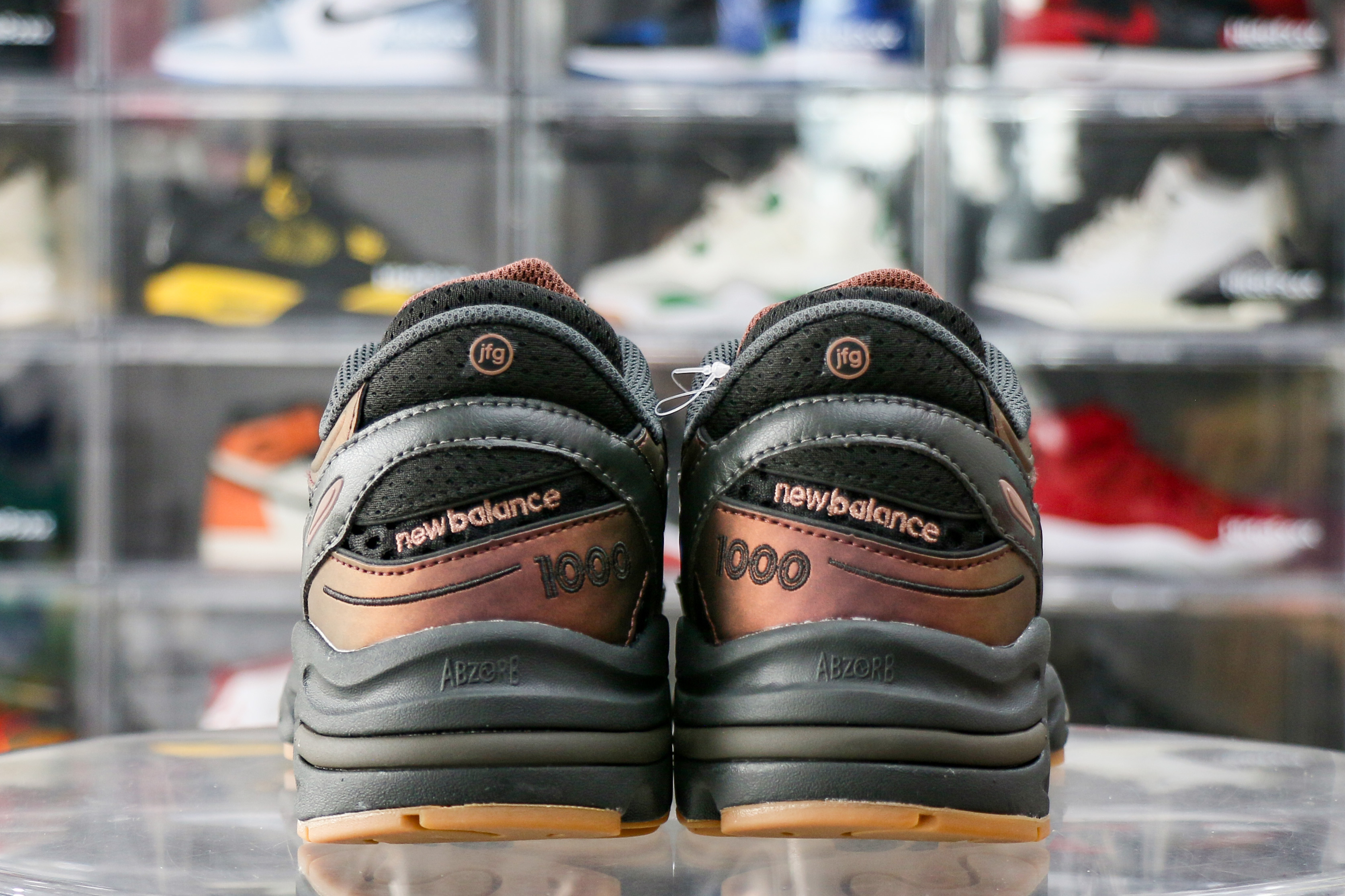 Released as a part of the ‘When Things Were Pure Pack,’ the Joe Freshgoods x New Balance 1000 ‘Black Ice’ brings a black open-knit mesh upper, complemented with iridescent bronze leather overlays and a rubberized ‘N’ logo for a signature look. A lowercase ‘jfg’ badge adorns the back tab, while mismatched ‘1000’ and ‘JFG’ signoffs grace the forefoot of each shoe. The black foam midsole partners with an ABZORB cushioning unit, anchored by a sturdy gum rubber outsole.: