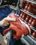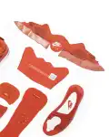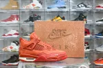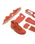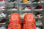The Nigel Sylvester x Air Jordan 4 Retro OG SP ‘Brick By Brick’ sports a monochromatic, orange suede upper with the traditional quarter netting, molded eyelets and plastic support wings. Off-white accents land on the Flight logo, Jumpman tongue tag and an embroidered forefoot mini-Swoosh. The Bike Air insignia adorns the heel tab, while an off-white foam midsole packs an Air-sole heel unit for soft cushioning.: