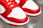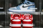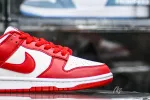 The Nike Dunk Low SP St. John’s is composed of a white leather upper with red leather overlays. A white midsole, red outsole, and classic Nike branding on the tongue completes the design. These sneakers released in June of 2020 and retailed for $100 and again in October of 2023 and retailed for $110.: