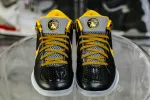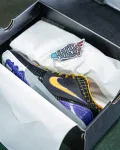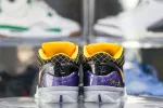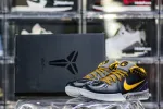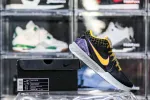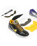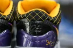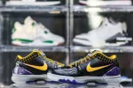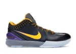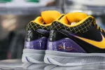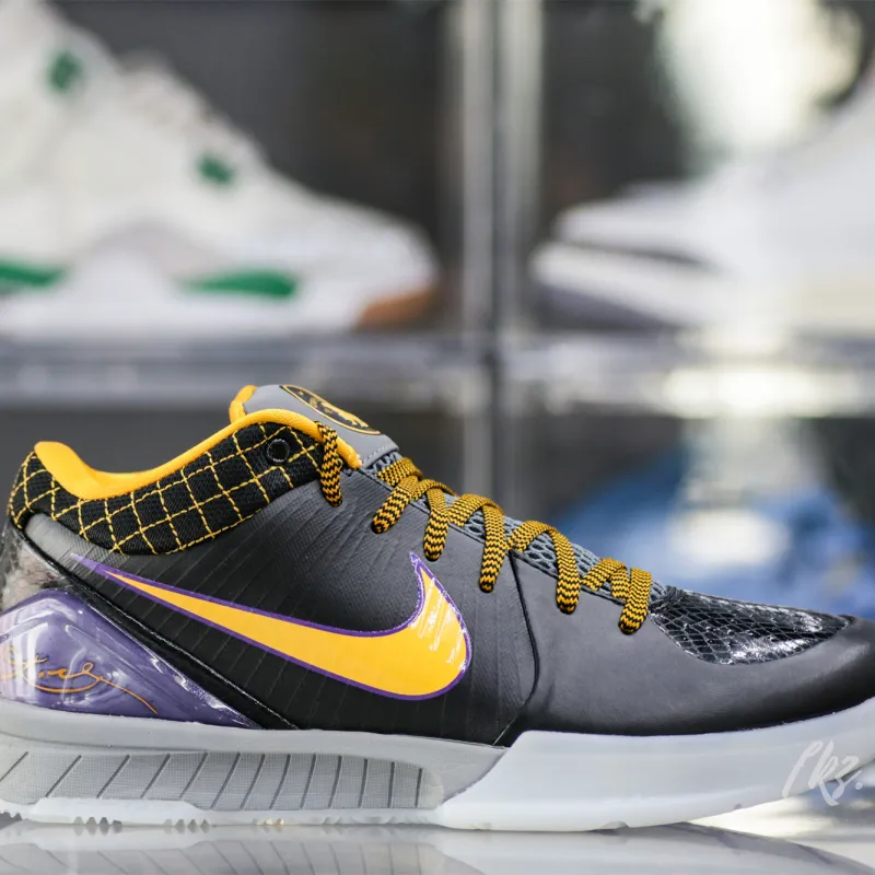 This Kobe 4 comes with a black upper plus yellow and purple accents, yellow Nike “Swoosh” outlined in purple, grey midsole, and a blue sole. These sneakers released in May 2019 and retailed for $175.: