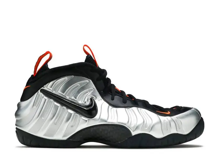 Releasing for the fall holiday, the Air Foamposite Pro ‘Halloween’ emerges with a colorway fit for the occasion. The shoe’s Foamposite shell upper appears in silver, with a jewel Swoosh on the side wall. Black leather trim is highlighted by Electro Orange on the branding, matched by the tongue and heel pull-loops, which provide easy on and off. Underfoot, Zoom Air provides cushioning, working with a shank plate for stability.: