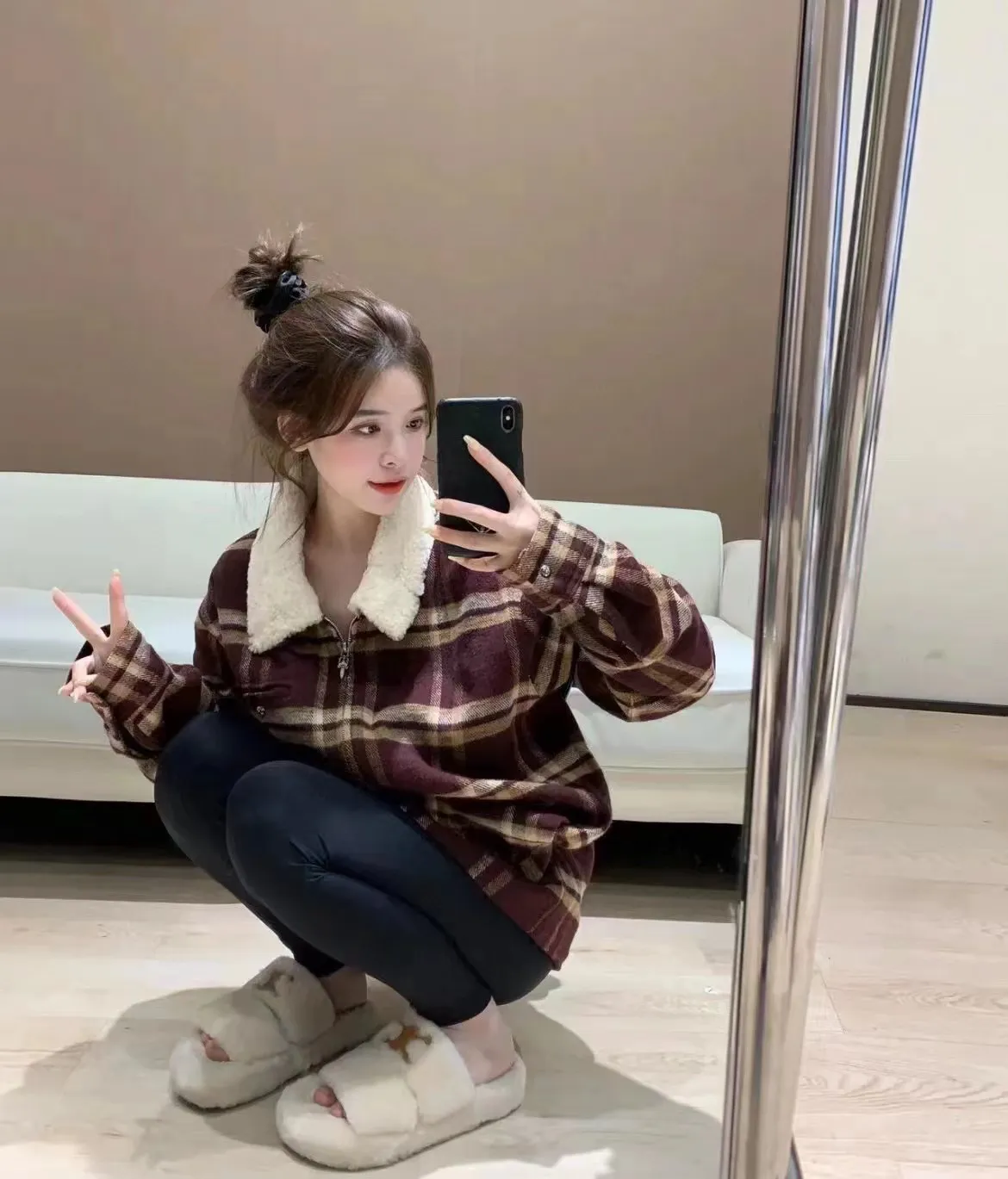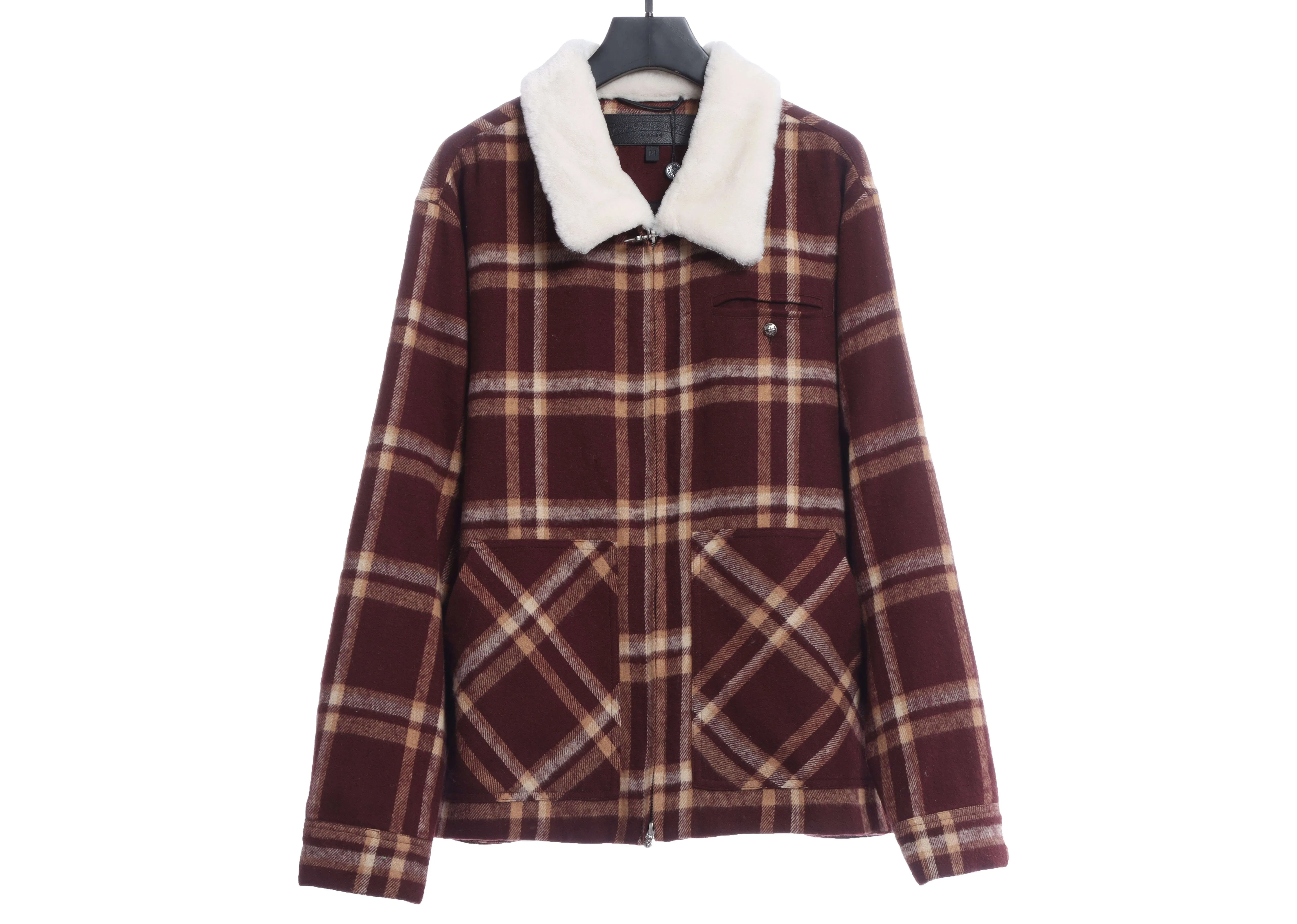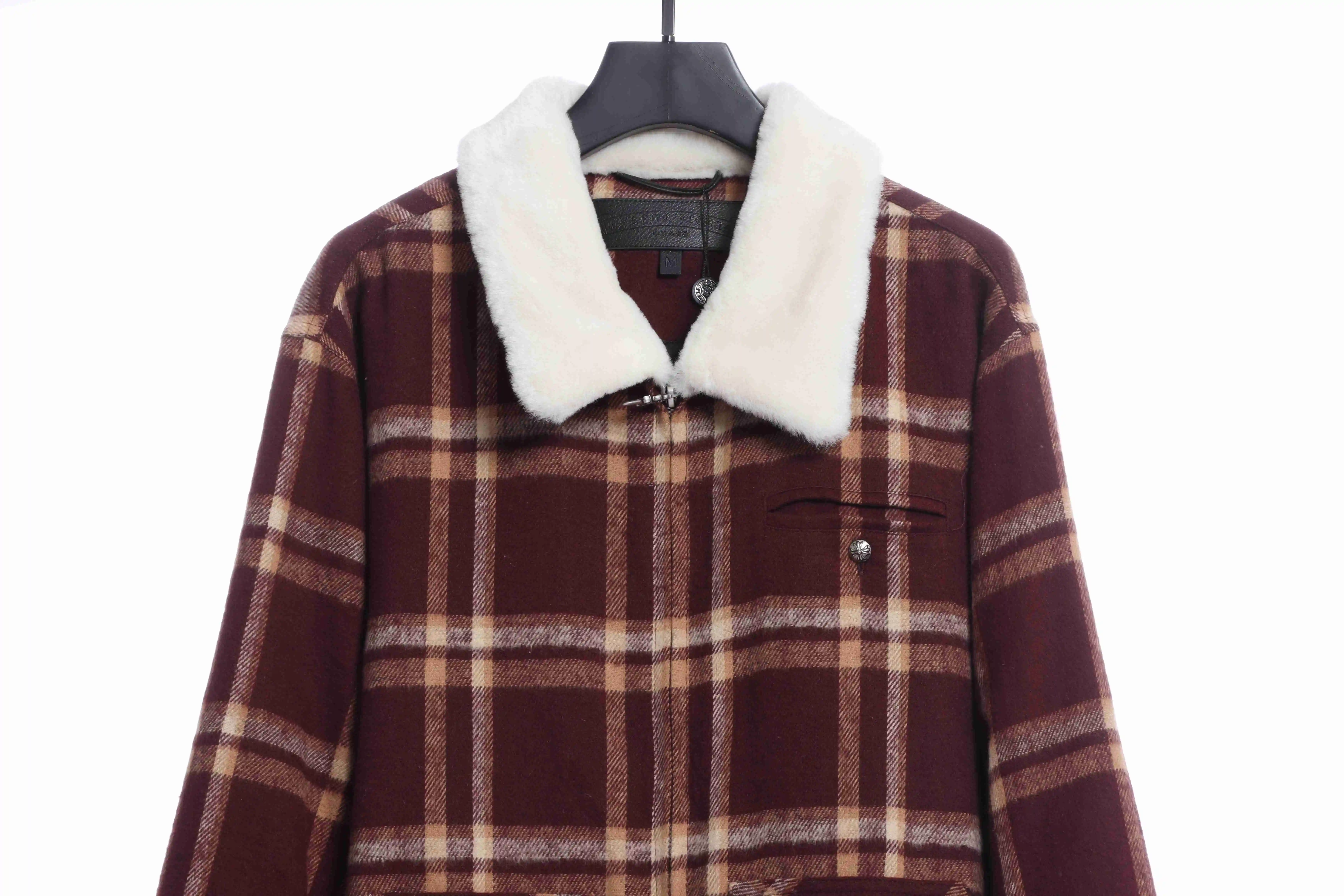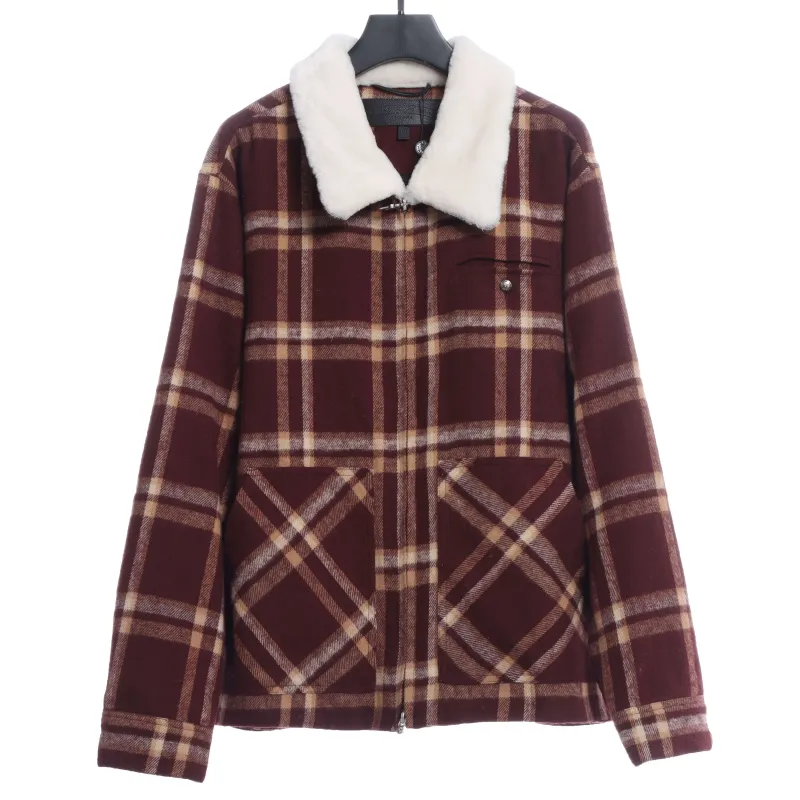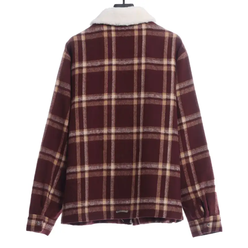 Chorme Sherpa Collar Plaid Jacket 2022 Orange Red