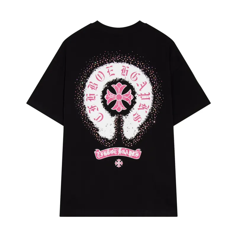 Chrome Hearts 2024 Spring/Summer New Arrival Horsebit Print Cross Rhinestone Short-Sleeve T-Shirt, Fabric: 26 Double Yarn + Heavy-Duty Bead-Dyed 300g: