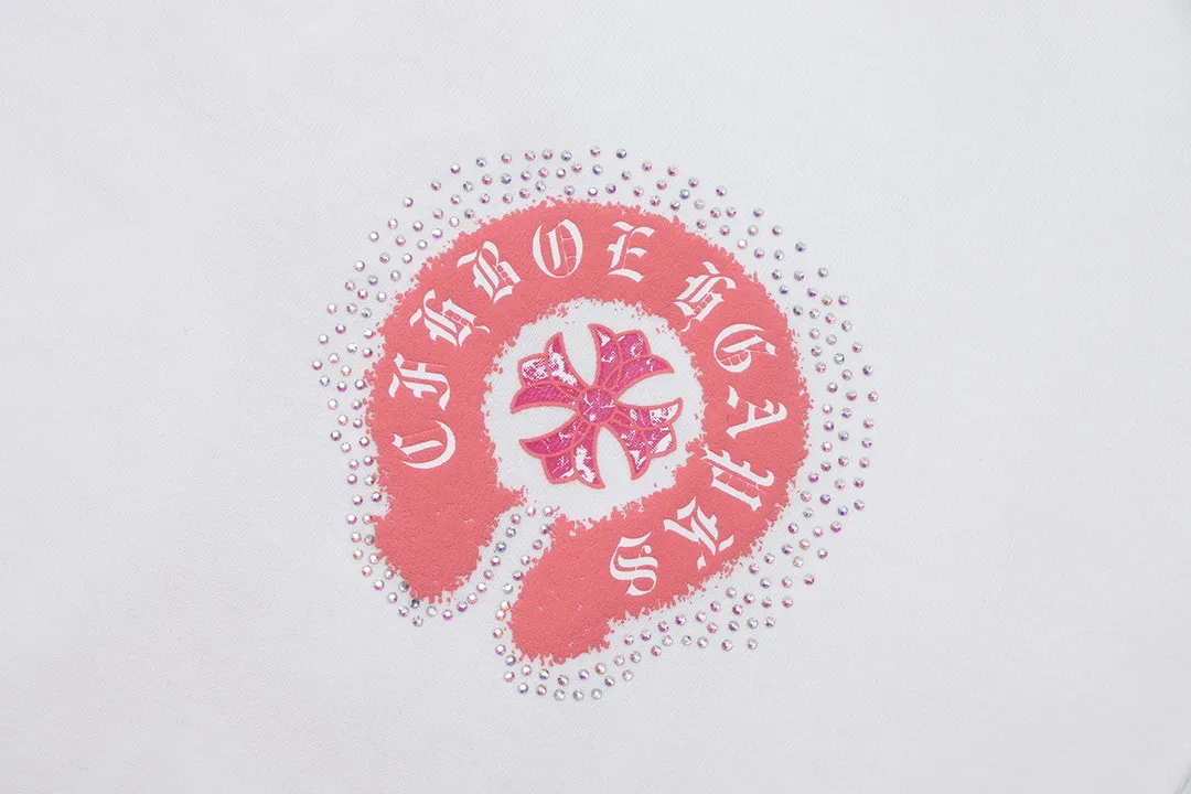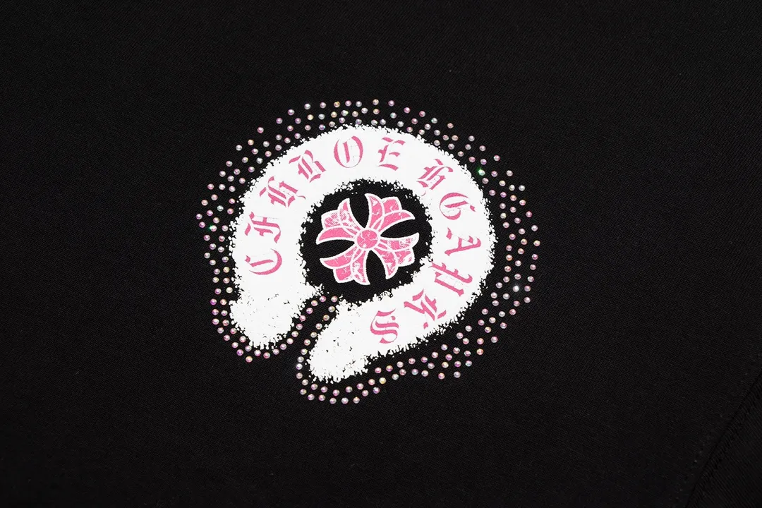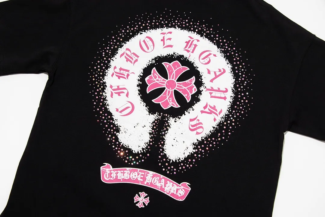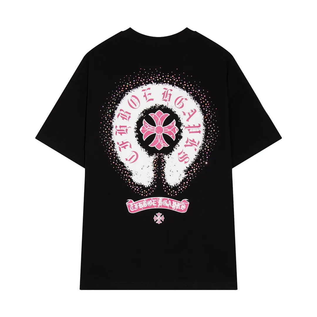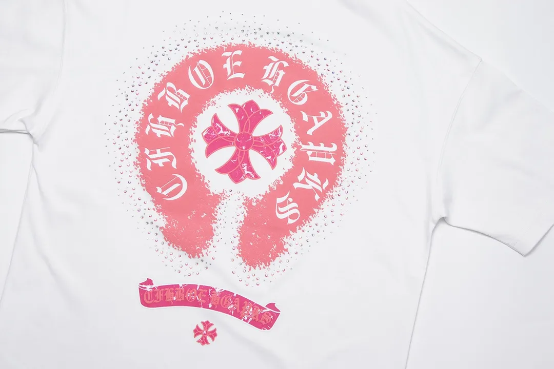 Chrome Hearts 2024 Spring/Summer New Arrival Horsebit Print Cross Rhinestone Short-Sleeve T-Shirt, Fabric: 26 Double Yarn + Heavy-Duty Bead-Dyed 300g:
