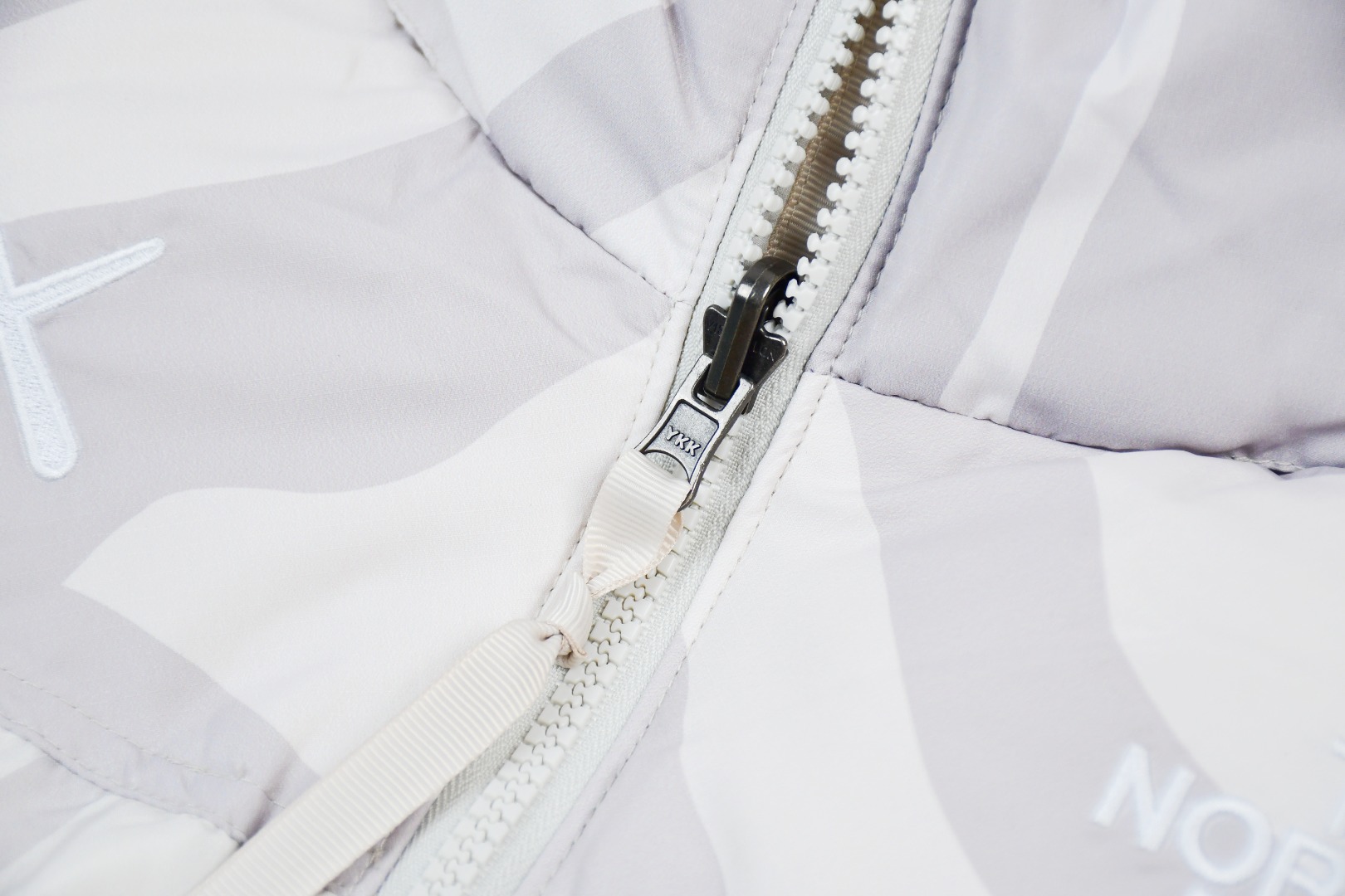 Factory-customized windproof and waterproof fabric with advanced waterproof and splash-proof technology. Please note that waterproof and splash-proof are two different concepts. This fabric is compatible with both technologies.: Authentic TNF embroidery data!! The correct version of embroidery has a gloss effect! Embroidery is done using the Barudan BEKS-Y924 embroidery machine, achieving the exact same results.