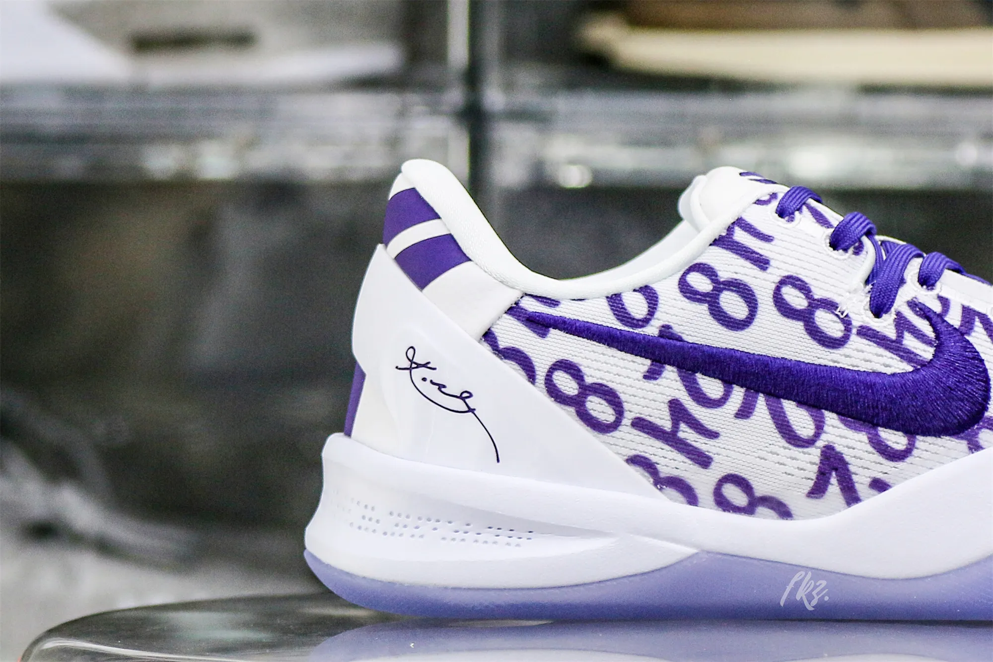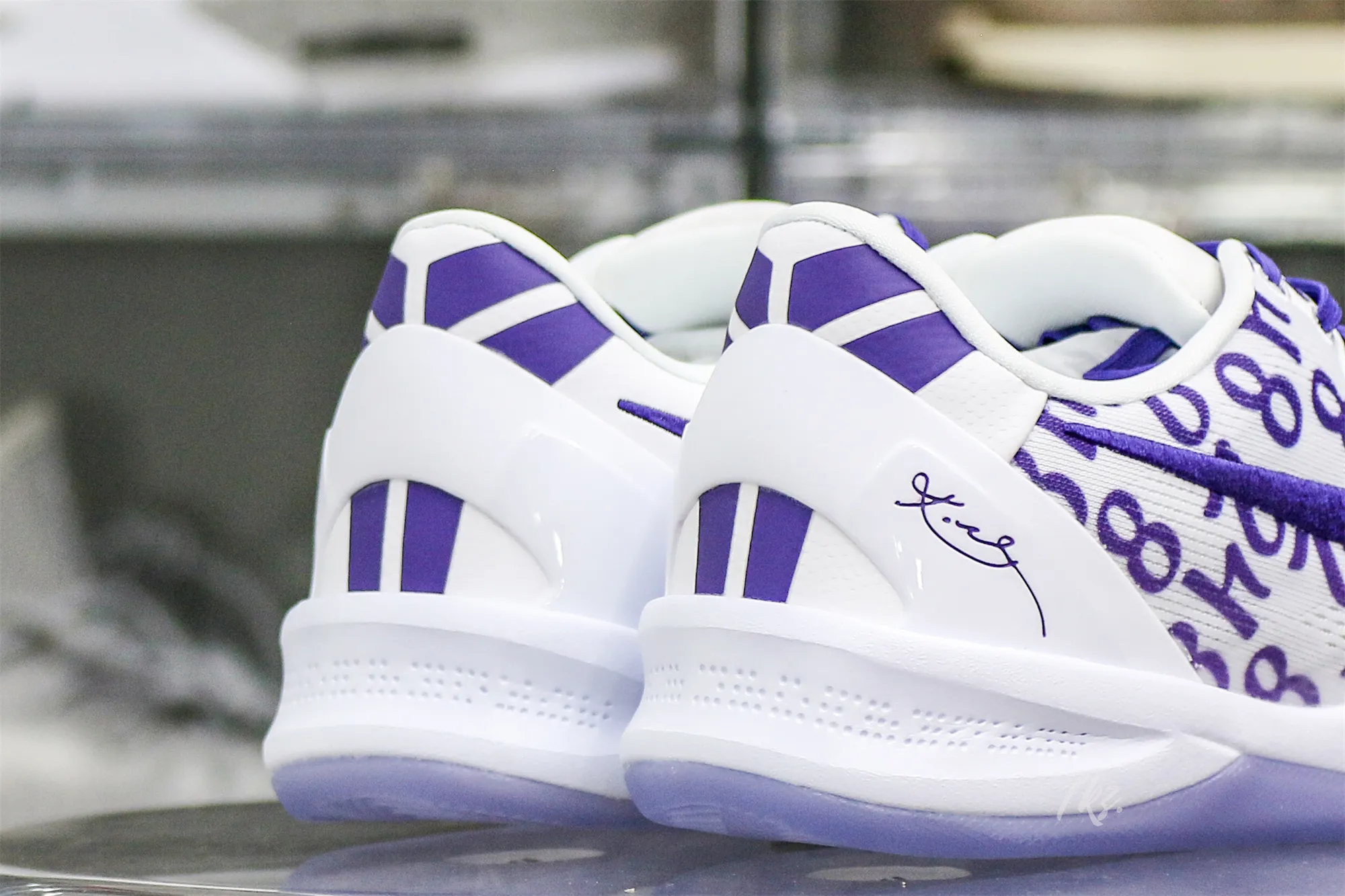 Kobe Bryant’s jersey numbers ‘8’ and ’24’ are monogramed on the engineered mesh upper of the Nike Kobe 8 Protro ‘Court Purple,’ secured with purple laces and a soft padded collar. A drop-in React foam midsole keeps every step lightweight, while a purpled-hued rubber outsole is split by a shank plate to keep the midfoot in place.: