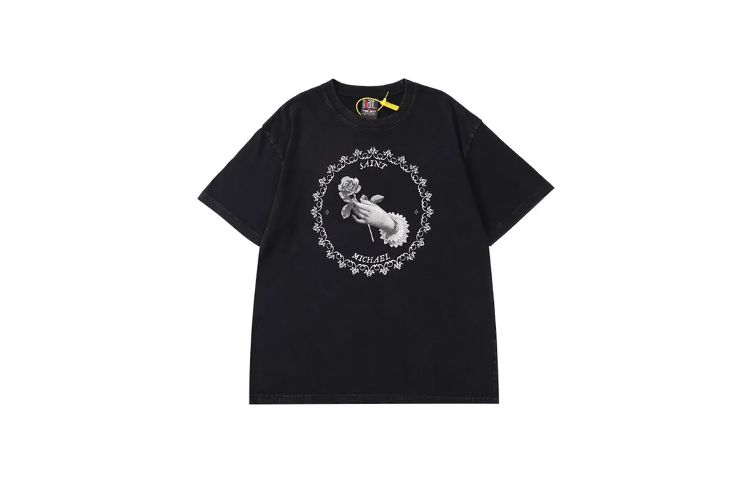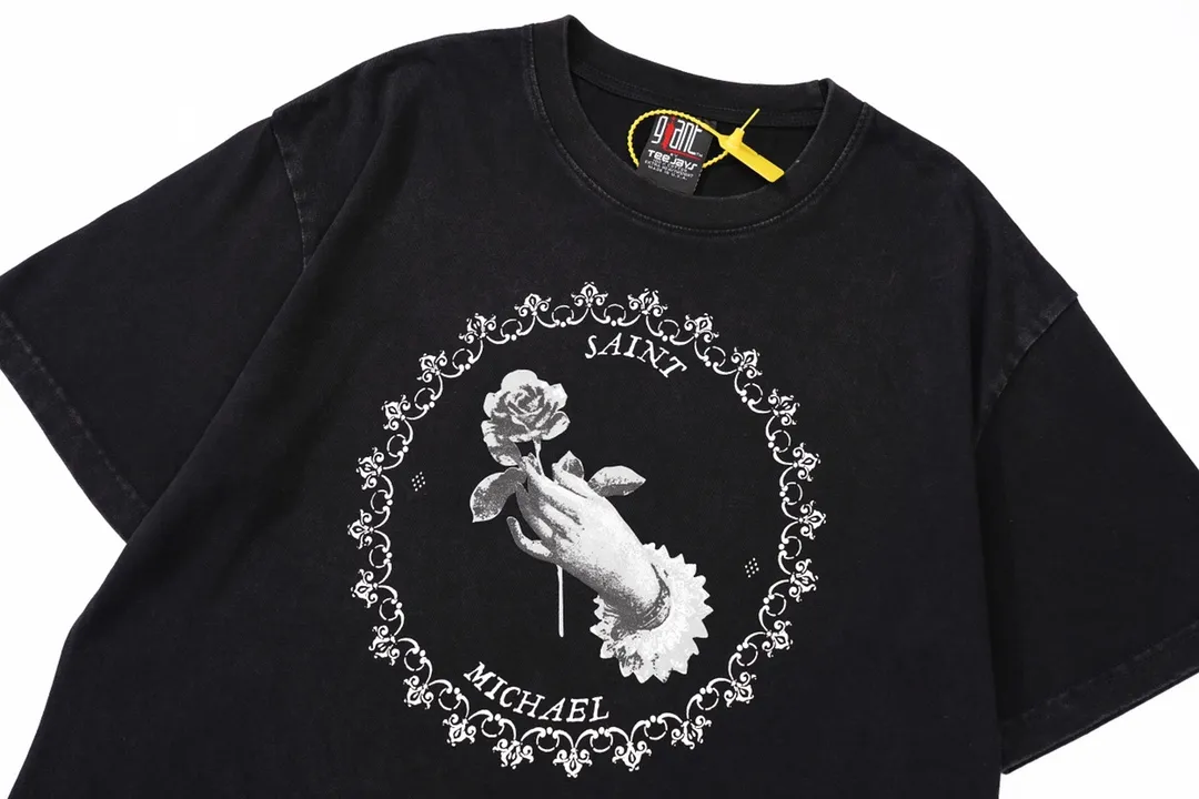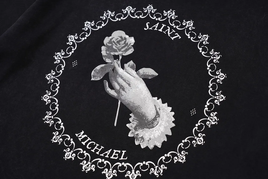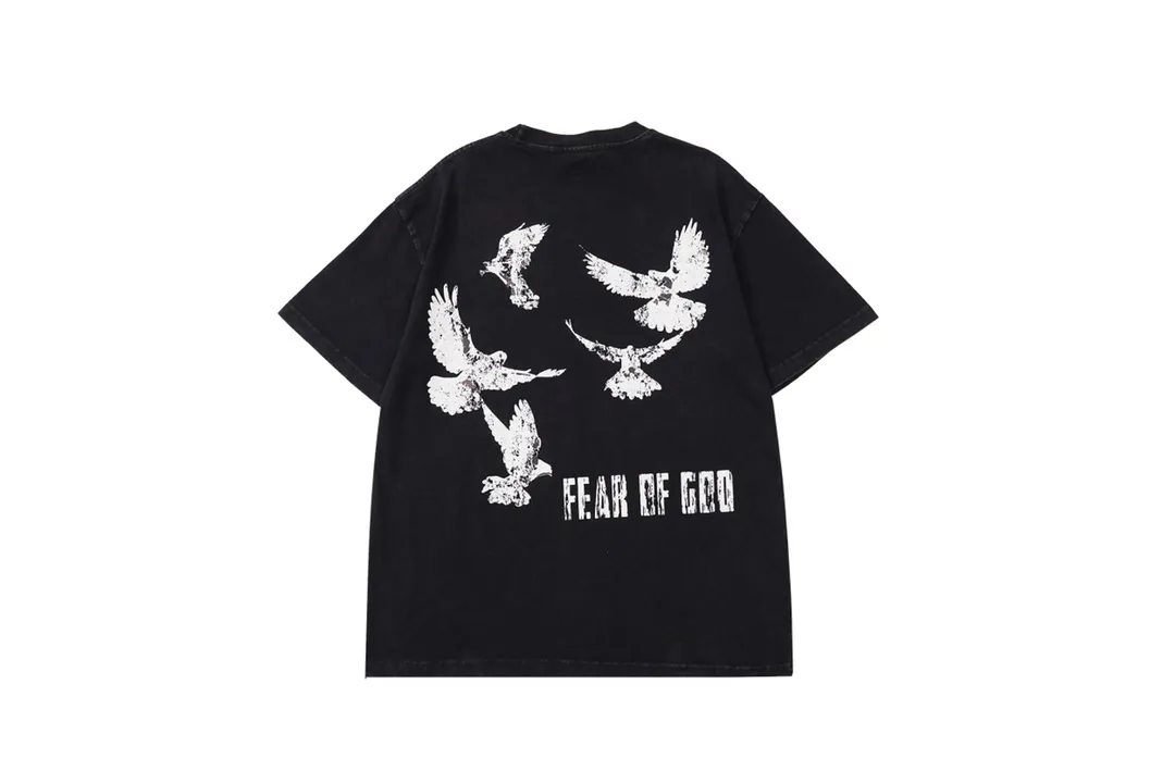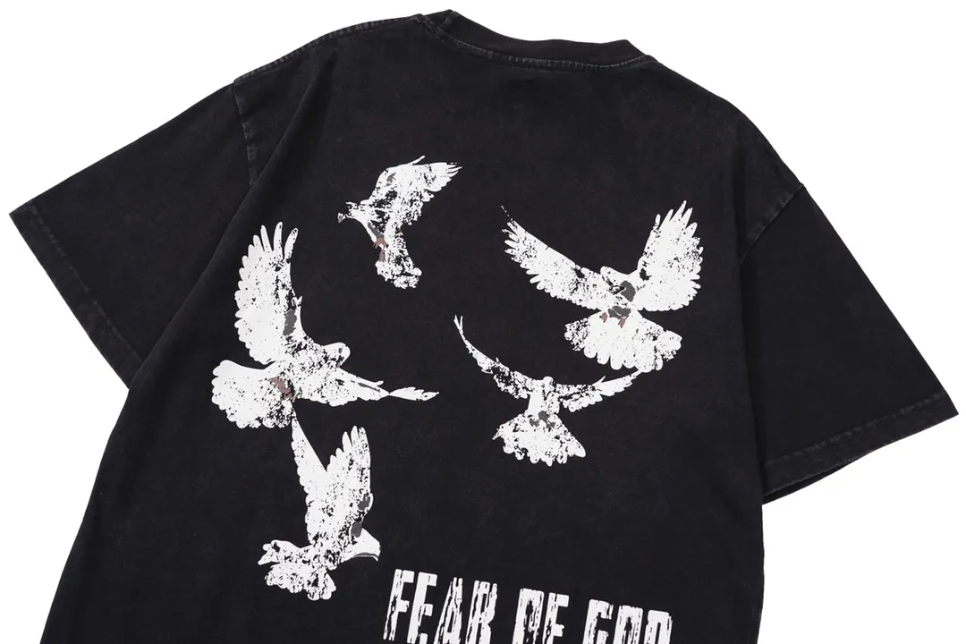 vintag3 hand-held rose and pigeon printed short-sleeved T-shirt